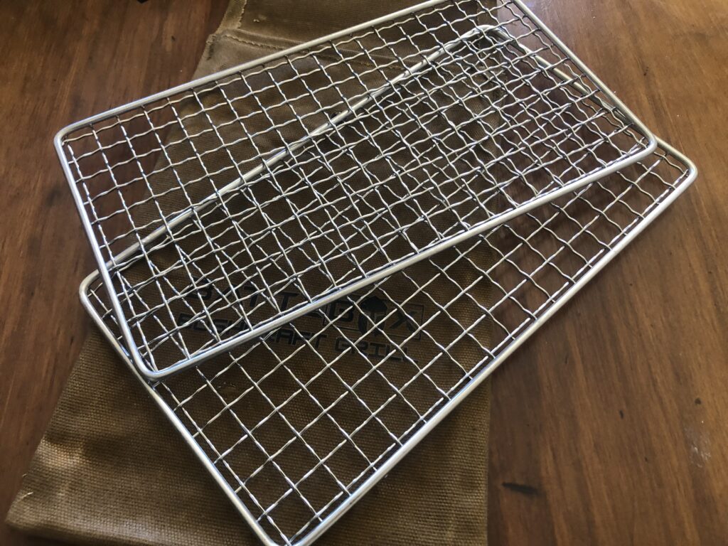 Ive been looking for a lightweight grill to add some versatility to my cooking gear. I looked at several brands but Im not a big fan of titanium unless trying to keep weight to a minimum. I ended up getting the battle box version for the canvas bag. The other brands are selling them with codura or nylon bags. Titanium is also becoming harder to get, many brands disappearing due to the tariffs.
