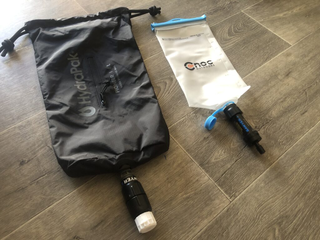 The Renovo, Sawyer Micro, Sawyer mini along with the Cnoc and Hyropak bags.